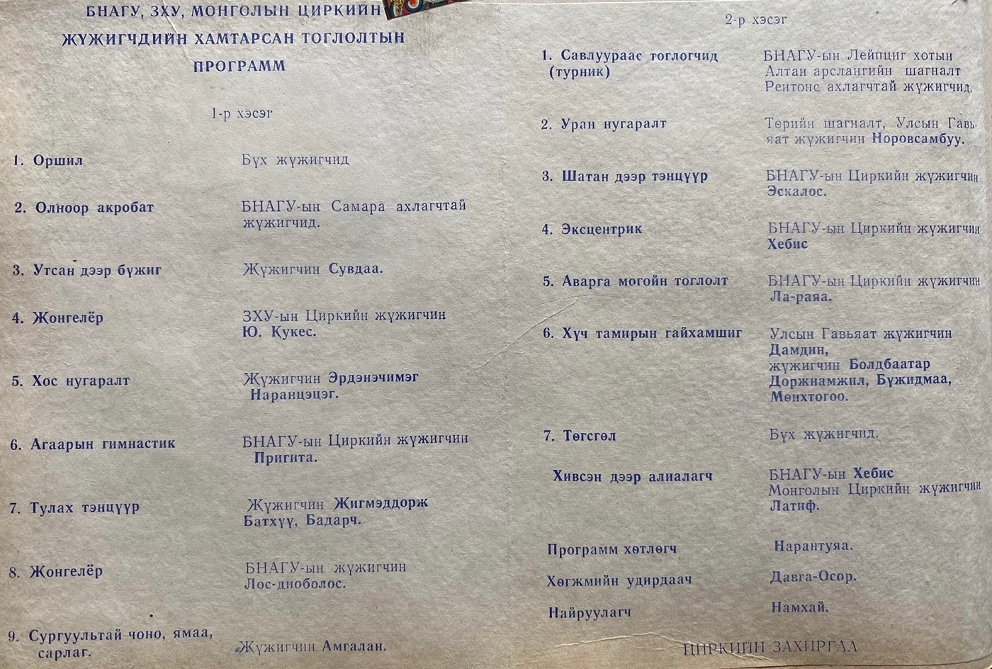 Die sozialistische Presse informierte die Bevölkerung nur kurz. Man erfuhr, dass ein erfolgreiches Gastspiel von einer Gruppe von DDR-Zirkuskünstlern des Volkseigenen Zentralzirkus in Ulan-Bator begonnen hat und dass in dem bis auf den letzten Platz besetzten festen Haus des Mongolischen Staatszirkus Tausende Besucher dem gemeinschaftlich gestalteten Programm herzlichen und lang anhaltenden Beifall zollten. Es gab mit den sozialistischen Staaten eine Vereinbarung, so dass die MVR-Hauptstadt in jedem Jahr Zirkuskünstler aus einem anderen Bruderland begrüßen konnte. Vor 50 Jahren war die DDR an der Reihe.